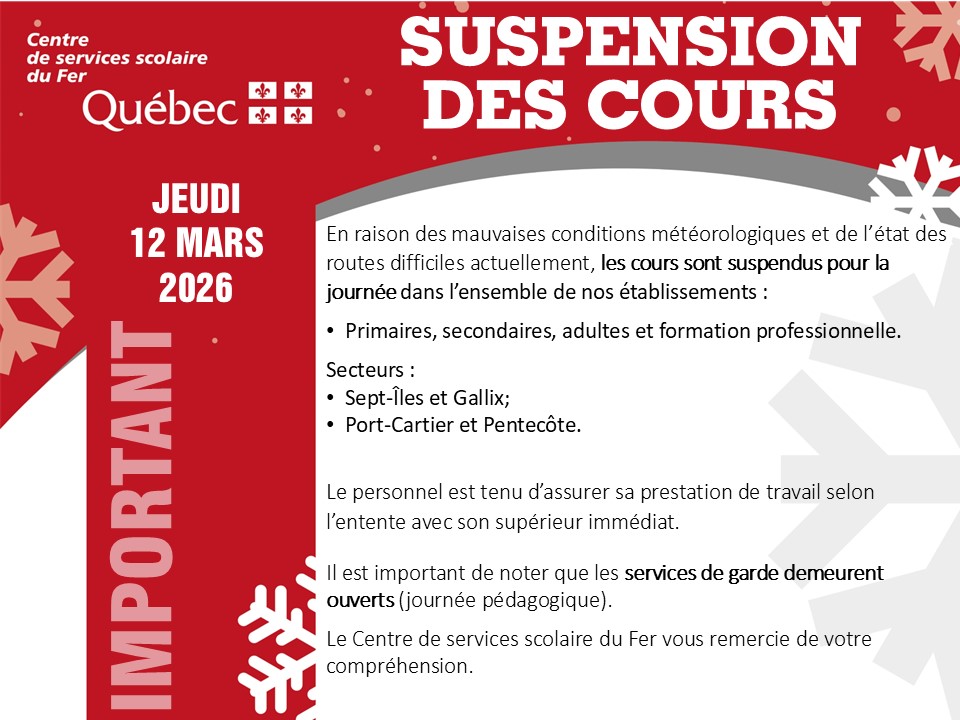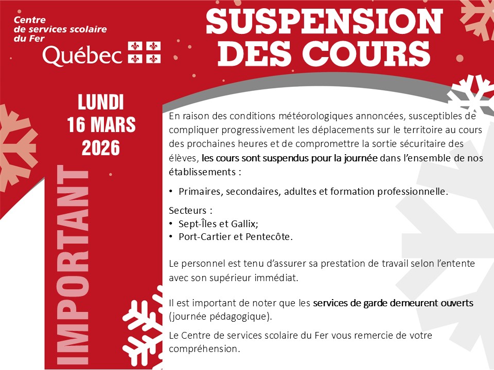 © 2026 Centre de services scolaire du Fer | Copyright